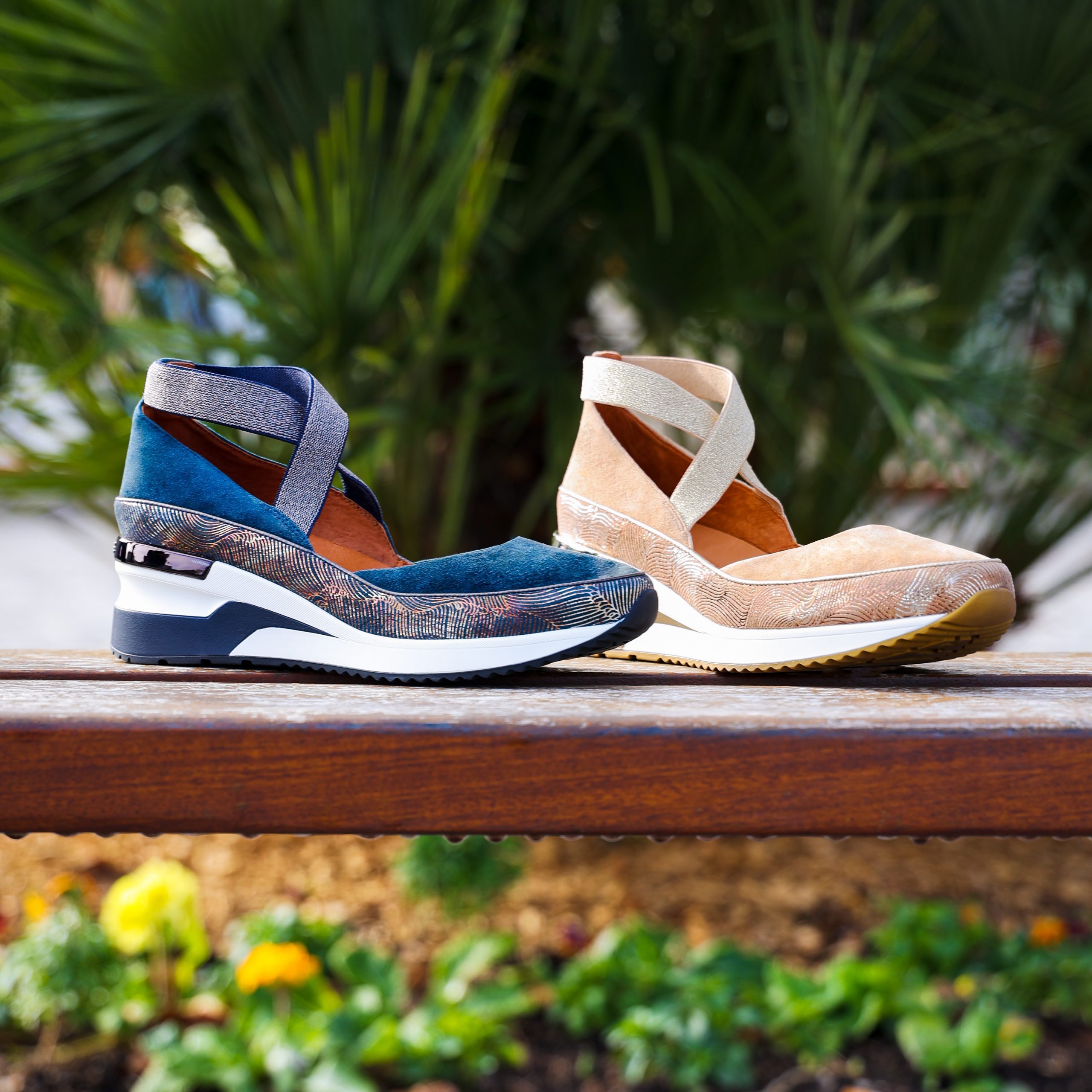 Déclinée chic et originale, cette basket compensée et élastiquée se porte comme une chaussure élégante.